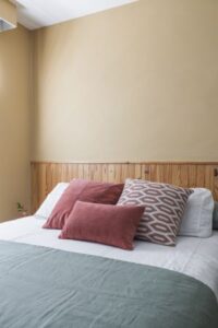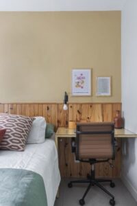 É o caso deste quarto, pintado com Papel Picado e Barbante, dois tons suaves que funcionam como neutros quentes. A combinação traz aconchego sem pesar, reflete bem a luz natural e mantém o espaço visualmente leve. O resultado é um ambiente confortável e arejado, que comprova que é possível, sim, amenizar a sensação de calor com cor, fugindo do branco absoluto
