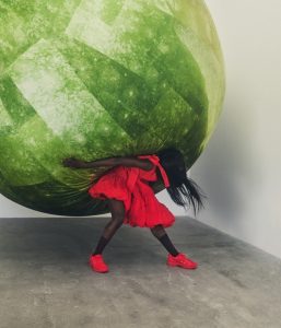 Para a campanha visual desta parceria, a estilista se uniu ao artista e fotógrafo Casper Sejersen (@ caspersejersenstudio) e ao estúdio criativo MOON (moon_intl), criando imagens dinâmicas com uma instalação de maçã gigante inspirada em seu desfile, com temas de amor, força e beleza.