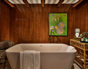Com conceito contemporâneo, a composição traz a personalidade como ponto central. Foi idealizada para despertar memórias e estimular sensações, rompendo com os padrões de um spa tradicional. O tom impactante fica por conta da narrativa eclética pautada no mix & match de diversos estilos e ganha relevo com cores marcantes. A paleta cromática mistura os tons mais neutros das estampas em P&B e em onça de alguns elementos e dá bossa a cores puras. O vermelho queimado, eleva a intensidade e se mistura ao verde mais claro, cítrico e saturado, e ao lilás, criando uma atmosfera energizante e vigorosa.