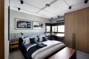 Apartamento tem espaço para chapelaria e painel com portas mimetizadas na área social