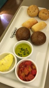 Couvert: pães especiais, manteiga, azeite aromático e compota de tomates