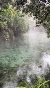Uma delas é a transformação do cenário da Nascente Azul. O rio homônimo, onde acontece o passeio da flutuação no complexo, encontra-se coberto por uma névoa, criando um visual mágico. O fenômeno ocorre graças à diferença entre a temperatura do meio externo e a do rio, já que suas águas brotam da Nascente Azul e se mantêm a constantes 24°C, independente do clima. Fazer a flutuação em dias mais frios é uma experiência bem agradável na Nascente Azul, já que o rio fica mais quente que o ambiente externo. É como se a água estivesse aquecida.