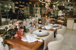 Além dos itens da Bergerson Presentes, as mesas contam com o apoio de móveis e objetos da Artefacto, Persépolis, OBS Decor, Marmoponta, Led Iluminação, Marmi Stone KG e Campestre.