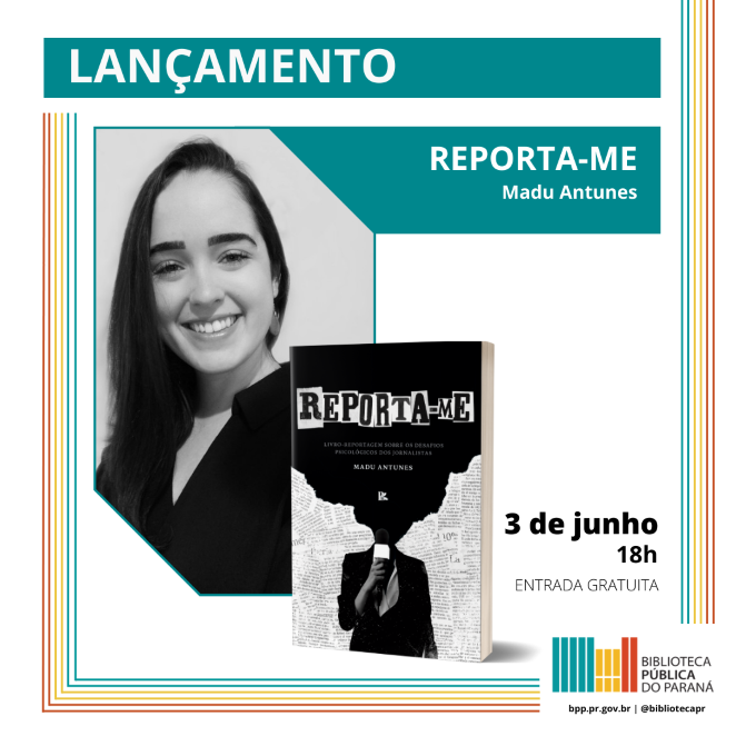 A Biblioteca Pública do Paraná recebe nesta sexta-feira (3) o evento de lançamento de Reporta-me: Livro-reportagem Sobre os Desafios Psicológicos dos Jornalistas, de Madu Antunes
