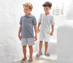Para os meninos, o “Navy” ou estilo náutico segue em alta e é uma das apostas para a coleção Primavera Verão. Na Milon, a combinação da tendência com o color block e os elementos que fazem referências ao mar estará presente em conjuntos, blusas e bermudas. Na construção das peças, os diferentes tipos de botões ganham destaque, como os de madeira que trazem um toque natural ao look. Além disso, há novidades na parte de estamparia em embossing e nas etiquetas decorativas, proporcionando um visual moderno, inspirado no lifestyle europeu.
