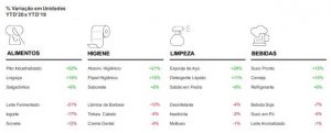 Por conta do novo cenário de isolamento social, os consumidores tendem a cortar os supérfluos (maquiagens, fragrâncias, bebidas alcoólicas) para abastecer as despensas de itens essenciais, como alimentos (massas e sopas instantâneas) e produtos de limpeza sabonete líquido para mãos, lenços umedecidos). O consumo também migrou para as compras online e para mercados menores, de bairro.