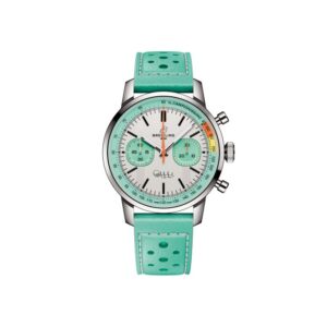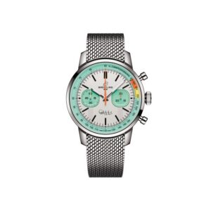 Cada relógio vem com a opção de uma pulseira de couro perfurado ou uma pulseira de malha de aço inoxidável para completar o visual moderno e retrô. O cronógrafo de 41 mm funciona com o Calibre de Manufatura 01 da Breitling, oferecendo precisão certificada pelo COSC e uma reserva de marcha de aproximadamente 70 horas. Os submostradores “squircle” (nem totalmente quadrados, nem totalmente redondos) às 9 e 3 horas registram os segundos e os minutos do cronógrafo, enquanto os botões em formato de cogumelo permitem um controle suave das funções do cronógrafo. Um fundo transparente revela o funcionamento interno do movimento, com seu anel externo gravado com “Fausto Coppi Tribute” ou “Gino Bartali Tribute” e “One of 750”.