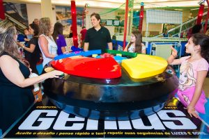 No Brinquedoteka: um Mega-Genius com 2 metros de diâmetro para ser jogado em equipes de 4 pessoas por vez.