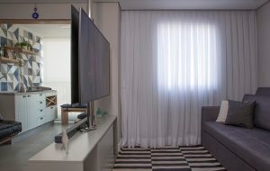 O trio é de extrema importância no projeto, tornando essencial a harmonia entre eles, além, é claro, de considerar o restante do mobiliário da sala, criando um centro de interesse. “Uma das dicas é que o tapete nunca deve ter a largura menor que o sofá, e o estofado deve ficar posicionado de maneira que converse com a circulação do ambiente. Já as cortinas devem ser escolhidas de acordo com a luminosidade incidente da janela, para que seu desempenho seja garantido”, explica Bruno.