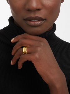 Conjurando o magnífico Coliseu de Roma em suas formas fluidas, esculturais e arquitetônicas inconfundíveis, o novo anel B.zero1 apresenta uma onda brilhante cravejada de diamantes abraçando a distinta espiral central em ambas as extremidades. O toque sutil acrescenta um traço de sofisticação ao design atemporal e eternamente moderno do ícone, dando forma a um novo clássico. Disponível na versão de três aros em ouro amarelo, rosé e branco 18kt, a nova versão funde seu lendário espírito que desafia as convenções com a força evocativa de sua nova inspiração.