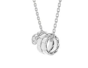 Em ouro branco, a coleção Serpenti Viper revela uma expressão radiante do ícone. O colar com pingente retorna, e um novo par de brincos de argola reinterpreta o motivo característico em uma forma versátil e contemporânea, onde detalhes deslumbrantes em pavê delineiam os contornos esculpidos do corpo da serpente. Um par de brincos longos captura a quintessência da luz hipnótica de Serpenti, transformando cada movimento em um brilho de elegância e poder.