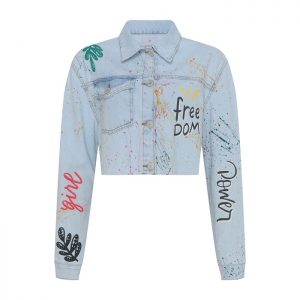 A lettering designer Lin Mei Chian, nascida e residente de Recife, cidade da comunidade Casa Amarela, destaca o poder e a singularidade feminina como ponto de partida para o modelo de jaqueta que mescla a delicadeza das rosas com palavras de empoderamento em uma estampa colorida e fun.