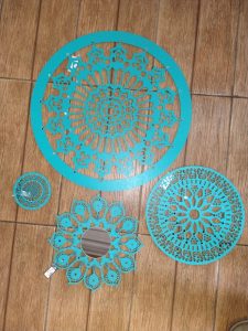 A artesã Vera Cassador, de Pedreira, criou mandalas utilizando como material a madeira de reflorestamento. Suas peças podem ser penduradas na parede ou dispostas sobre um móvel. Com a metade de uma mandala ela criou um porta-chaves e por cores vivas, como o amarelo e o azul celeste.