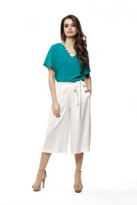 “O primeiro ponto que precisa ser desmistificado é que a pantacourt não pode ser usada por mulheres baixas, já que o modelo encurta a silhueta. O truque é fazer uma combinação que mantenha as principais características da peça: conforto e praticidade”, destaca Glaucia. De acordo com a estilista, no verão vale investir em tecidos mais leves, como linho ou o algodão. Outro ponto que vale ressaltar é a versatilidade das pantacourts: elas podem ser usadas tanto em ambientes formais quanto em momentos mais descontraídos. “As combinações vão de uma camiseta até um blazer. Vai depender do estilo de cada pessoa e da ocasião, mas o que vale é ficar confortável e estar bem vestida”, conclui a estilista.
