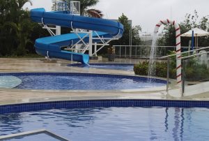 A estrutura comporta 500 mil litros de água e disponibiliza um salão com capacidade para 300 pessoas e dois toboáguas para a diversão de adultos e crianças
