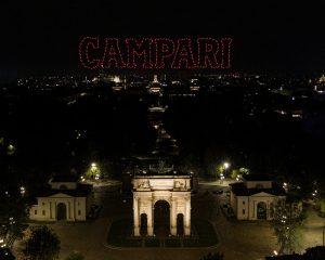 No lançamento da nova garrafa, a Campari sediou o maior show de drones já visto na Europa, iluminando o skyline do Parque Sempione — que foi fechado para o evento — foi possível observar de qualquer ponto da cidade. A exibição durou 12 minutos e trouxe à vida os símbolos icônicos milaneses por meio de um incrível espetáculo de iluminações.