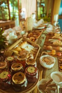 Alimentos frescos e naturais são os protagonistas da gastronomia no Carmel Charme. Servido no restaurante de vidro, com vistas espetaculares para o mar, o café da manhã é um deleite para começar o dia com energia e bom humor. Além dos tradicionais, como frutas, sucos e iogurtes naturais, o grande buffet traz uma gama de opções para quem não quer sair da dieta. Uma área do restaurante é dedicada aos alimentos funcionais e uma enorme seleção está disponível: grãos, mix de nuts, farinha de semente de uva, kombucha, cúrcuma, chia, folha de couve, óleo de coco, whey, entre outros. Um liquidificador à disposição permite que cada um prepare, na hora e como quiser, seu próprio suco verde ou vitamina. Na estação de tapiocas, o quitute típico sai fresquinho, com os mais variados recheios saudáveis. E há também um grande leque de opções para aqueles que tem alguma restrição alimentar. Pães e bolos sem glúten e queijos e leite sem lactose não faltam.