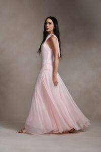 A proposta visual se constrói a partir do equilíbrio entre leveza e estrutura, em criações que transitam com naturalidade por diferentes ocasiões ao longo do dia. A cartela de cores acompanha essa narrativa ao reunir tons como rosa frapê, rosa powder, vinho cassis, azul noite e bege champagne, formando um guarda-roupa coeso e versátil.