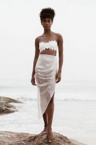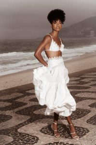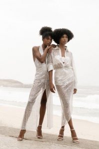 Voltando ao Rio de Janeiro dos anos 60 e 70, a collab carrega uma essência repleta de bossa e elementos glam. Suas rendas e paetês ganham linhas curvilíneas e remetem ao famoso calçadão de Copacabana, aparecendo em diversas aplicações de calças, biquínis, camisas, saias e tops. A cartela de cor conta somente com um tom de branco e prata, ideal para o Ano Novo. Já para garantir o frescor durante o verão, os itens são desenvolvidos em seda, linho, algodão e lycra, em uma modelagem fluida e leve, perfeita para altas temperaturas.