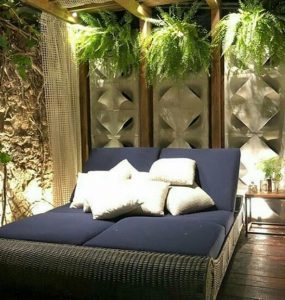 No ambiente Jardim das Fragrâncias assinado por Larissa Gransotto e Laura Gransotto foi criada uma loja de aromas para ambientes inspirada nas árvores frondosas, nos diferentes aromas e nos quatro elementos da natureza, criando um local externo que estimula os sentidos dos visitantes. A Carol Cortinas reveste o pergolado com uma cortina de renda natural, um tecido que traz elegância, movimento e deixa passar as sensações que um local aberto causa, suas almofadas em tecido de rendas algumas de fibras naturais e outras com fibras sintéticas dão aconchego e incrementam a chaise do jardim.