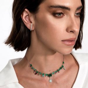 A feira também trará a exibição de uma das parcerias da marca, com a Cruzeiro Mine, mina que possui uma cadeia produtiva sustentável nomeada Fair Mining. Como resultado dessa parceria, Carolina Neves criou peças inteiras sustentáveis em gemas como a Turmalina, representando todo o DNA da marca em peças exclusivas, que se destacam no mercado nacional e também no evento.