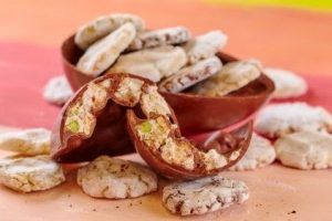 Alfajores em formato de ovo nas duas versões – tradicional e chocolate