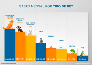 O Brasil ocupa hoje o segundo principal mercado pet do planeta. Em primeiro lugar estão os Estados Unidos, com 40% do faturamento de varejo do setor. O pet nacional movimentou R$ 34,4 bilhões em 2018, alta de 4,6% frente a 2017, quando o faturamento final foi de R$ 32,9 bilhões. Uma pesquisa divulgada em 2019 pelo Instituto Pet Brasil aponta que o gasto mensal médio com cães é de R$ 338,76. No caso dos felinos, o gasto médio é de R$ 196,56 mensais.