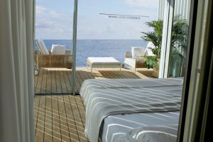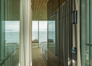 A estrutura usa vidro triplo – processados pela Control Glass -, e é formada pelo vidro de controle solar Guardian SunGuard® SN 70/35 HT, vidro Guardian ExtraClear® e o vidro laminado Guardian ClimaGuard® Premium2, usado para reforçar a segurança geral e a eficiência energética. A unidade de vidro fornece 61% de transmissão de luz e 32% de fator solar. Isso significa que o vidro permite a entrada abundante de luz solar, bloqueia a maior parte do calor e proporciona à Punta de Mar excelentes níveis de isolamento térmico, controle solar, segurança e isolamento acústico, criando um núcleo com alto desempenho e eficiência energética. O vidro não só facilita uma visão muito mais transparente, vívida e sem obstrução do mar e do ambiente natural, como também permite que os hóspedes experimentem uma integração total com seu entorno em constante mudança. “Tendo em mente as características deste projeto, onde foi necessário resolver demandas extremas, buscamos a excelência dos vidros da Guardian Glass. Além disso, o suporte técnico da empresa também foi fundamental”, diz Francesc de Paula García, arquiteto do estúdio de arquitetura Mano de Santo.