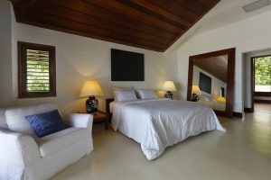 Quartos – 5 suítes (4 com vista para o mar), divididos em duas casas