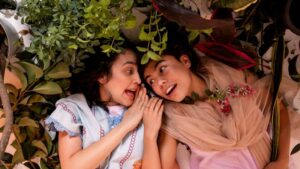 Maria Alencar e Luane Sato em cena no espetáculo infantil Histórias da Mata Calada. Foto: Natalia César/ Divulgação