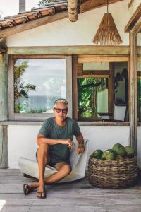 Em outras partes já não é assim, embora o nome seja comentado em jornais e revistas aqui e ali. Algumas das figuras mais conhecidas da moda, da arte e do cinema passam temporadas por lá, longe da agitação dos paparazzi e com muito sol na cabeça. Estamos falando, claro, da inesgotável Trancoso, que, não faz muito, era isolada do resto do planeta, sem estradas ou eletricidade. A vila autêntica na costa baiana mantém sua simplicidade boêmia nos detalhes. Os nativos da região assistiram à chegada dos hippies antes mesmo de as celebridades buscarem refúgio neste ponto que lembra o paraíso, e que merece uma visita ao menos uma vez na vida. Para Serge Cajfinger, é a anti-Saint-Tropez. Por isso, erguer esta casa é o sonho realizado desse francês nascido em Lille e criado no Brasil até os 14 anos de idade. Sete anos atrás, ele vendeu a Paule Ka, sua marca de roupas e acessórios com a cara da mulher parisiense e um twist da Provence, e deixou o universo fashion para se revezar entre o Rio e Paris. Foi quando decidiu fincar de vez um pé no Brasil. “Aqui a natureza é exuberante e ainda selvagem.
