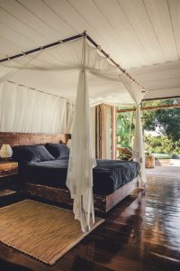 Em resumo, interpretou o lugar como a cenografia de um filme. “Aqui, nestes 75 m², tivemos de refazer tudo, com direito a três quartos e três banheiros. Eu coleciono casas e gosto de compartilhar com familiares e amigos.” Uma vez lá, Serge se impregna de natureza, música e comida. Não precisa ir muito longe: perto dali fica o Quadrado, que se anima e se ilumina no final da tarde. Jogos de futebol descalço, barracas com pratos típicos à base de peixe e lampiões que se acendem nas mangueiras. A vida em Trancoso é simples e descontraída, como se o mundo inteiro estivesse em festa…