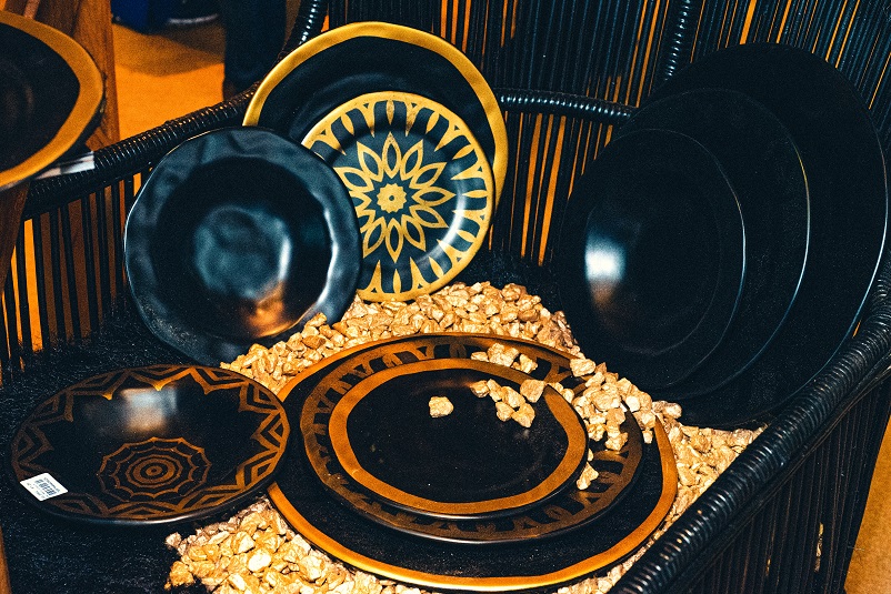 Também na lista de tendências diferenciadas, o preto fosco é uma das grandes apostas para esse ano. Presente em pratos, jogos de xícaras e até em talheres, o preto fosco é ideal para eventos à noite, como um jantar ou festa. Essa linha da marca Cêramica Scalla traz detalhes em dourado, outra tendência para o ano.