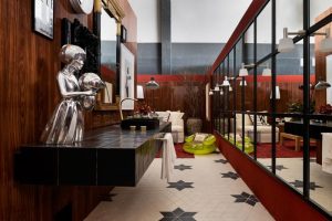 O mix de objetos clássicos e móveis modernos marca o Lounge Empresarial, de Ary Jacobs e Renan Mutao, do Studio Architetonika Nomad, e da designer Flavia Glanert. A paleta em tons de bronze, caramelo e laranja faz pano de fundo para o corredor galeria na entrada do ambiente e para obras de arte como a pintura de Andre Mendes. O ambiente traz móveis que são verdadeiras obras de arte, entre eles a cadeira e o banco Wiggle, do arquiteto Frank Gehry, a colorida poltrona Binta, do suíço Philippe Bestenheider, e a mesa de centro Quebra Mar, criada para a Mostra.