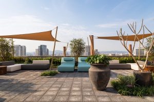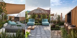 Muito ligado com a tendência de se ter um espaço de férias dentro de casa, que se tornou o refúgio particular de cada um durante a pandemia, o Rooftop CASACOR é como um lembrete de como a conexão com a natureza é capaz de relaxar, de fazer com que cada um se reconecte com o que é essencial. “É um espaço para descansar e se inundar com sensações de esperança de que logo a pandemia acabará”, destacam. A dupla teve como desafio transformar a laje do espaço, antes toda de cimento, em uma área agradável, atraente e aconchegante para o público. “Tivemos que nos atentar aos detalhes, pois não podíamos fazer perfurações drásticas ou colocar muito peso sobre a laje. Escolher espécies resistentes ao sol pleno e vento também foi essencial”, destaca.