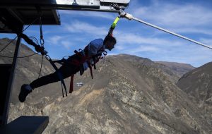 Na Nova Zelândia, Catapulta Nevis arremessa fãs de adrenalina a uma velocidade de até 100 km/h.