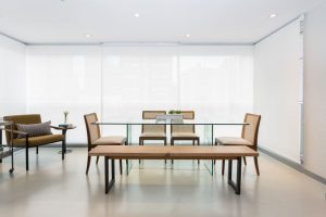 Funcionalidade e sofisticação no décor: através do conceito aberto, arquitetos trazem uma nova perspectiva para o apartamento de 64 m²