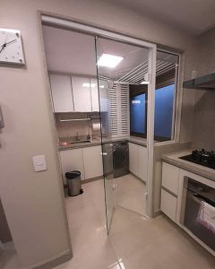 Ambiente pequeno, mas funcional! Porta divisória de ambiente garante estilo em locais compactos