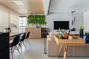 Integração e personalidade em projeto de apartamento jovem e descontraído