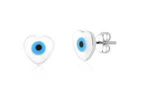 Brinco de Prata Coração Olho Grego Madrepérola – Coleção Aura