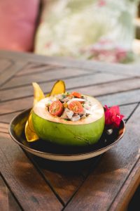 Também é possível apreciar a gastronomia da região sem sair de casa. O Ceviche de Coco Verde é uma sugestão refrescante, ideal para ser saboreada em ocasiões especiais.