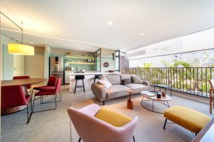 O Grupo Lar ainda se preocupa em proporcionar uma vida mais comunitária dentro dos seus empreendimentos, e, para La Casa Brooklin, as áreas comuns foram integradas. O térreo, por exemplo, foi inspirado em lobbies de hotéis, para promover maior circulação e utilização. “Com wifi, mobiliário e decoração acolhedora, nosso térreo pode ser utilizado para receber amigos, trabalhar e até mesmo relaxar”, diz Carlini. A área de lazer foi elevada ao 4º pavimento e ao rooftop, também pensada para privilegiar a convivência e a troca de experiências.