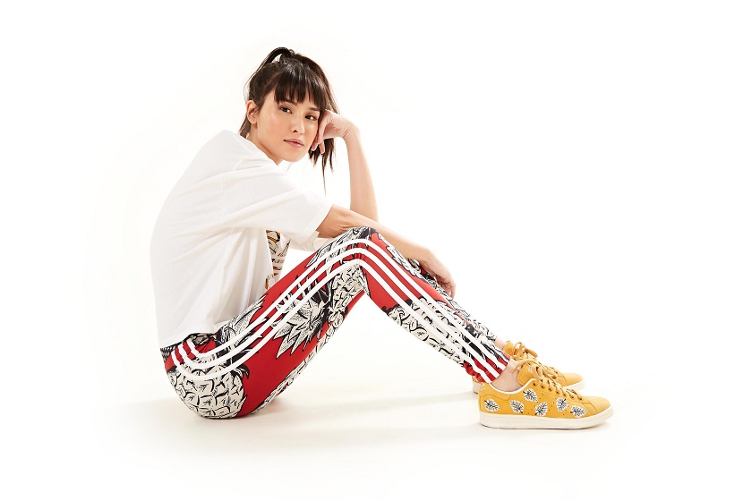 As estampas “Folhitas”, com folhagem Costela de Adão; “Abacaxitos” e “Cajuzitos”, que destacam o abacaxi e o caju, frutas do imaginário criativo da FARM. As peças incorporam modelagens democráticas do tipo cropped, jaquetas, bodies e casacos, além da jaqueta windbreakerleggings e shorts. Os ícones Stan Smith e Superstar também fazem parte da nova coleção.