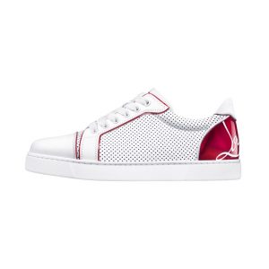 Já o tênis Fun Vieira de cano baixo se destaca pelo interior forrado em pele de novilho nude. Possui linhas elegantes, características da Maison Christian Louboutin, e combina pele de bezerro branca com couro perfurado de inspiração esportiva. O arremate final está no calcanhar revestido no novo couro vermelho vibrante, que ainda traz a assinatura do designer. Preço: R$ 5250