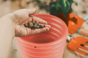 Drenagem: certifique-se de que o vaso possui furos na sua base, permitindo que o excesso de água seja drenado. Além disso, é fundamental fazer um dreno. Coloque 10 cm de pedrisco no fundo e, sobre eles, uma manta geotêxtil. Por fim, coloque o substrato/terra. A construção do dreno é importante para não obstruir o fluxo de água ao longo do tempo.
