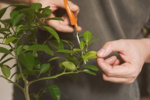 Manutenção: realize podas frequentes para que a planta não fique muito grande. É importante manter bom equilíbrio entre a raiz e a parte aérea. Neste momento, podem ser retirados ramos doentes ou com o ataque de alguma praga, prevenindo assim a necessidade de aplicação de produtos químicos.