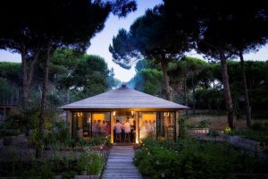 Food Circle, Comporta, Portugal – Para uma experiência gastronômica íntima e imersiva do hotel Sublime Comporta, Portugal 12 convidados – uma mistura de visitantes internacionais e clientes portugueses regulares – se reúnem todas as noites de verão e início de outono ao redor de um balcão em um pavilhão ao ar livre, localizado no coração do jardim orgânico de 16.000 metros quadrados do hotel. O chef Tiago Santos e seus assistentes criam um menu degustação diferente a cada dia, com base nas 300 variedades de vegetais e ervas do jardim que estão em seu auge, além de peixes capturados de forma sustentável e carnes criadas a pasto fornecidas por fornecedores locais confiáveis.