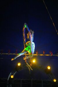 • Performances aéreas como corda indiana e tecido acrobático