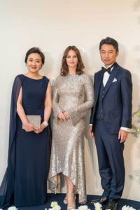 Srta. Yukari Suzuki, diretora de marca da Clé de Peau Beauté, Srta. Felicity Jones, embaixadora global da marca da Clé de Peau Beauté e Sr. Katsunori Yoshida, diretor de tecnologia do Clé de Peau Beauté Lab comemoram o lançamento do novo La Crème em um jantar de gala privativo no Corinthia Hotel London (PRNewsfoto/Clé de Peau Beauté)