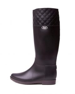 De espírito bucólico, as peças aconchegam e protegem através de materiais impermeáveis como a borracha e o fullplastic, se mostrando em modelos adultos que passeiam dos irreverentes coturnos a galochas em nuances sóbrias como o preto e terrosos, e também totalmente estampadas, explorando prints florais e campestres, além de propostas com design estilo montaria e até um modelo com salto.